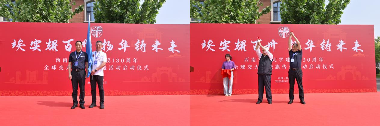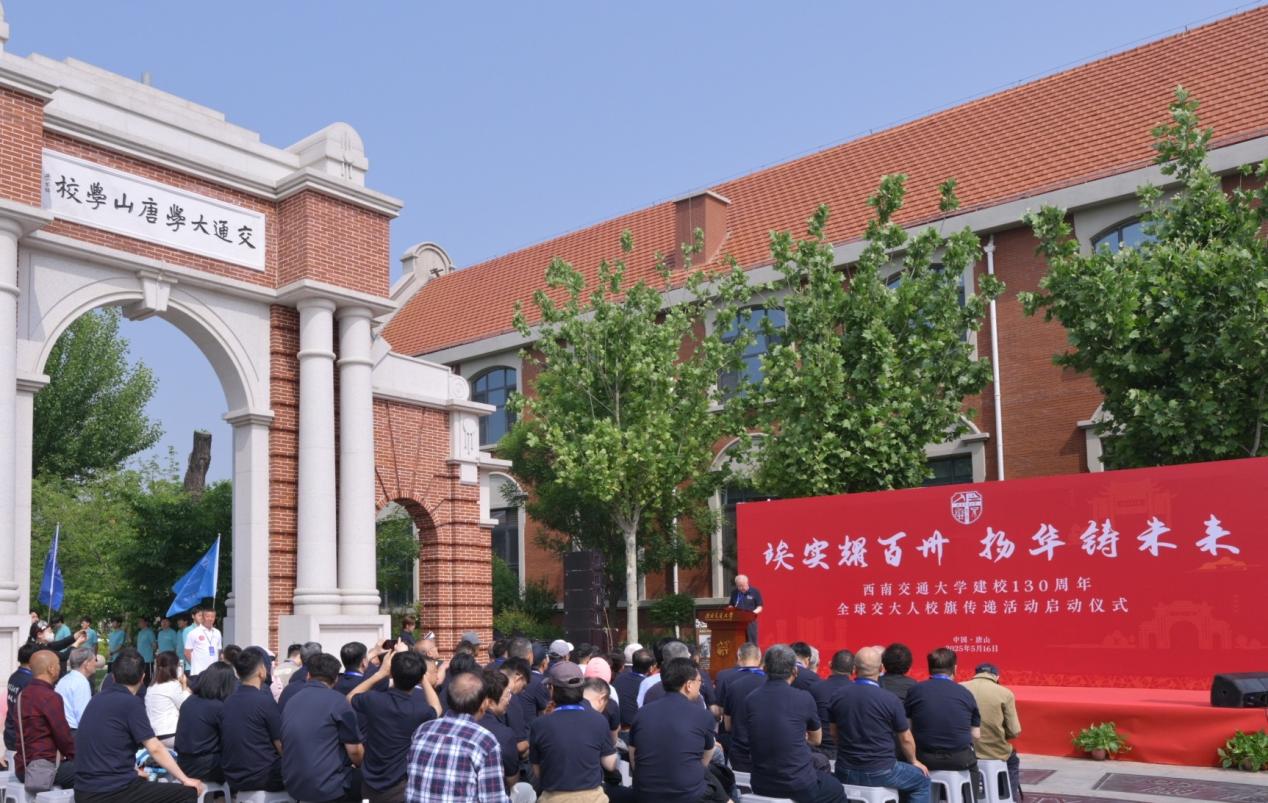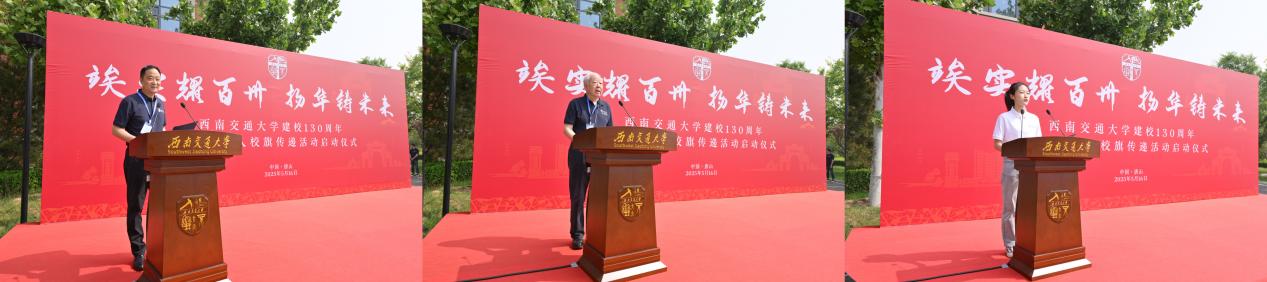 5月16日,西南交通大学建校130周年全球交大人校旗传递活动启动仪式在唐山园区举行。校党委副书记高平平,原铁道部副部长、桥隧1961级校友蔡庆华出席仪式。