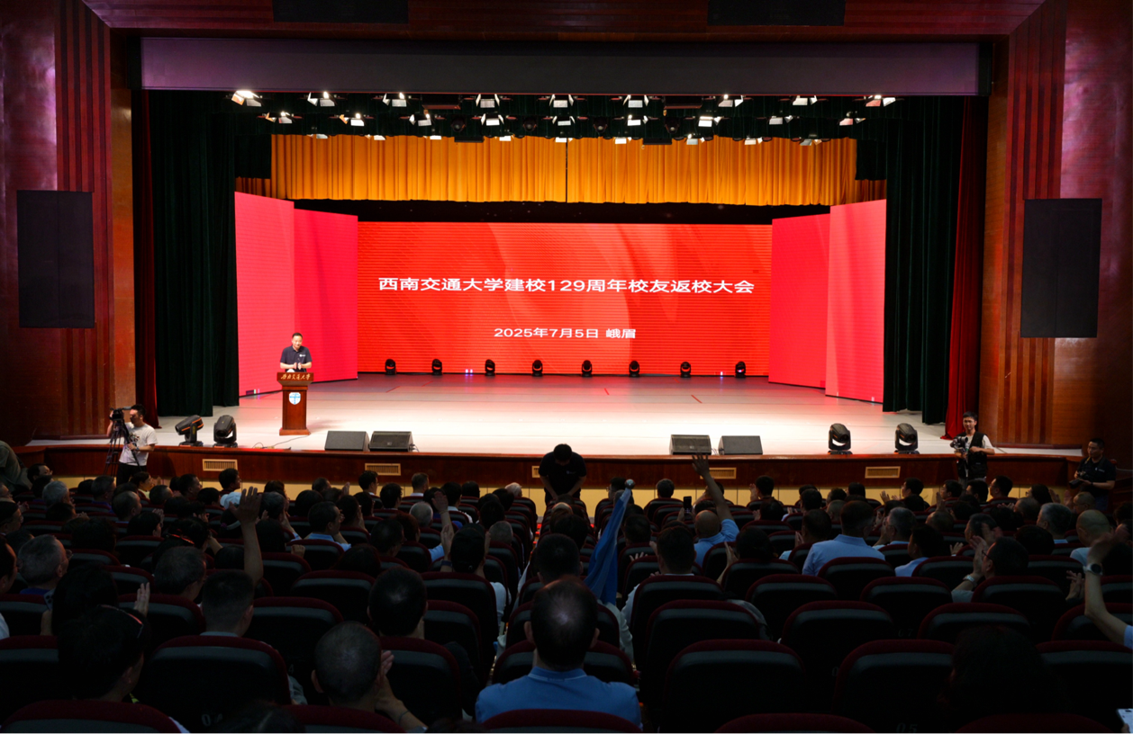 7月5日,西南交通大学建校129周年校友返校大会在峨眉校区明诚堂举行。学校校长、校友总会会长闫学东,中国科学院院士、中国工程院院士沈志云,中国工程院院士高宗余,学校党委常委、副校长康国政,校长助理宋新,乐山市委常委、宣传部部长郭捷,乐山市副市长廖沂,峨眉山市委书记、峨眉山景区党工委书记李良,峨眉山市委副书记、市长彭警出席会议。学校党委副书记高平平主持会议。