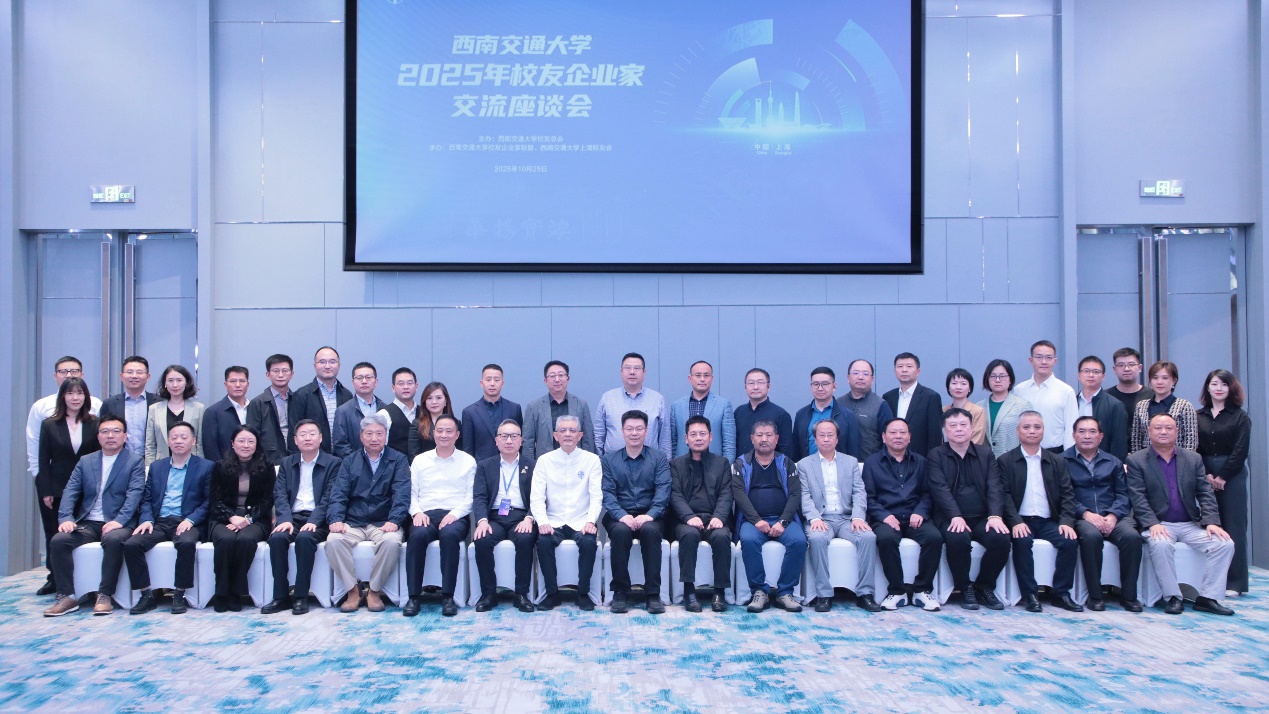 25日下午,闫学东一行出席西南交通大学2025年校友企业家交流座谈会。闫学东介绍了学校 “5+2+N”新形态科创园建设布局,并邀请全体校友企业家深度参与2026年建校130周年系列活动。会议还围绕“共建‘5+2+N’校企共同体”“献策130周年校庆盛典”“优化校友企业家联盟”三大核心议题展开深入研讨。