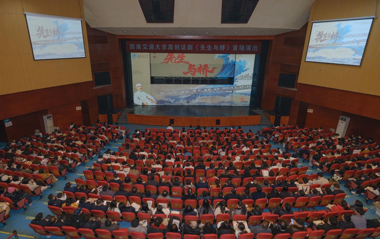 以时代之精神延续百年,以家国之情怀奔赴远方,为献礼茅以升先生诞辰130周年,历时一年,中国科协“科学家故事舞台剧推广行动”剧目、西南交通大学原创大型校园话剧《先生与桥》于1月4日晚迎来首演。九里校区大学生会堂内座无虚席,掌声如潮,北京茅以升科技教育基金会名誉理事长茅玉麟女士,四川省科学技术协会党组成员、副主席辜彬及兄弟单位、院校嘉宾,学校党委书记余敏明、校长闫学东等全体在校校领导、师生和校友代表等1300余人共同观看演出,见证了一场跨越时空的精神对话。